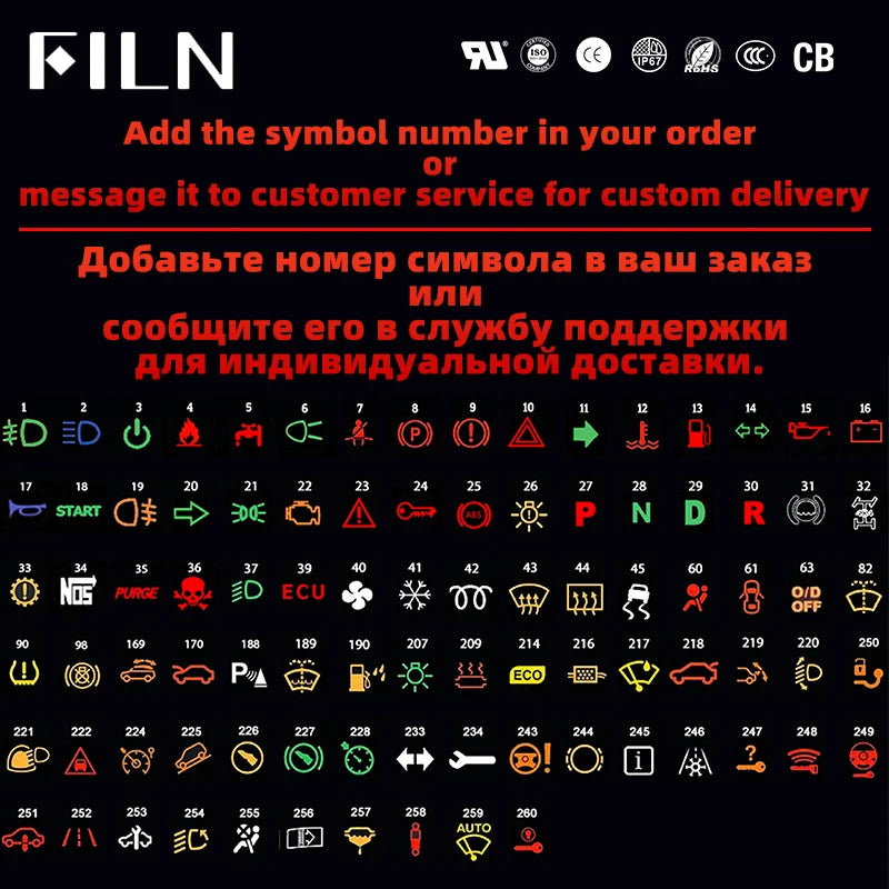 ✔️ Fås med forskellige symboler (fx nærlys, fjernlys, blink, neutral, olie, batteri m.m.)